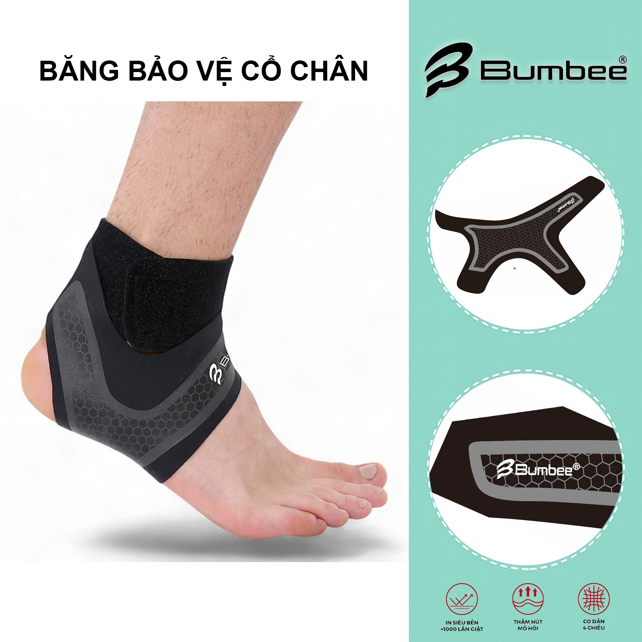 Băng bảo vệ cổ chân thể thao Bumbee – Chống lật, cố định khi chơi cầu lông, bóng rổ, gym